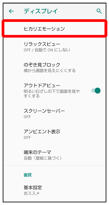 | ロック解除時 | 画面ロック解除時にイルミネーションを表示させるかどうかを設定します。 |