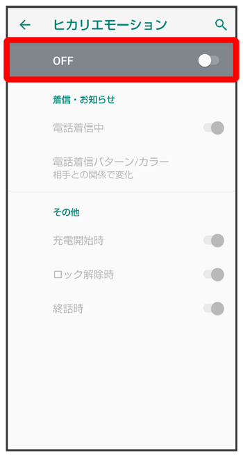 | 終話時 | 通話の終了時にイルミネーションを表示させるかどうかを設定します。 |