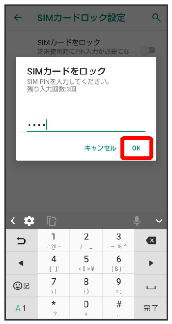 PINコードを操作するときや、SIMカードロック設定時に電源を入れたときは、PINコードの入力が必要になります。
