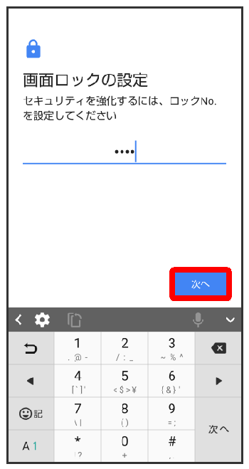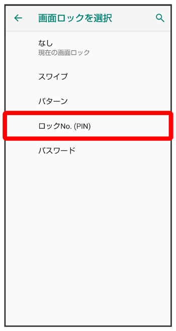 ロックNo.(PIN)で画面ロックを解除するように設定する