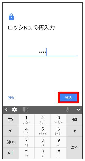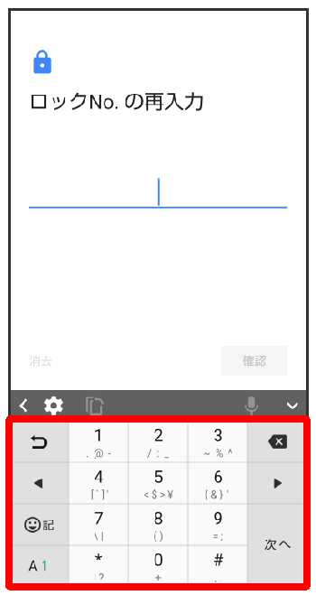 - をタップすると、入力したロックNo.(PIN)を消去できます。