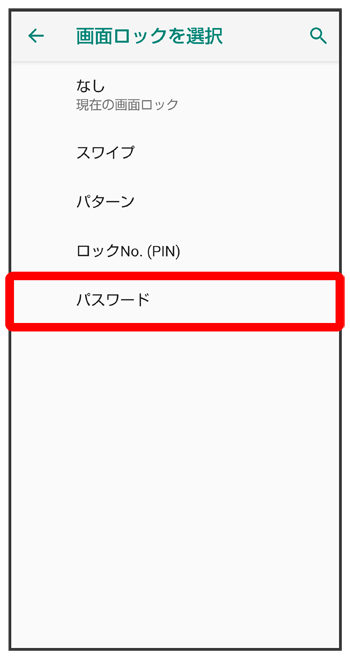 パスワードで画面ロックを解除するように設定する