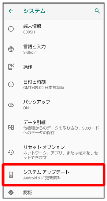 - システムアップデートが進むと最後にが表示されます。タップして、システムアップデートを完了させてください。