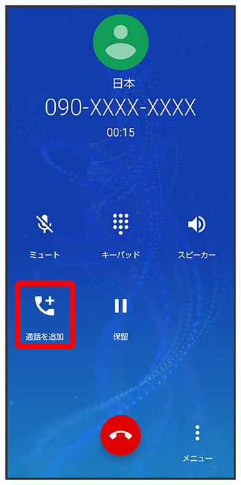 - 電話番号発信画面の上部を下にフリック通話を追加する連絡先をタップ通話を追加する電話番号をタップと操作しても、通話を追加できます。