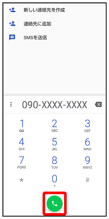 - 電話番号発信画面の上部を下にフリック通話を追加する通話履歴の