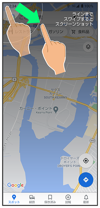 画面の隅から中心に向かってスワイプして、スクリーンショットを撮ることができます。