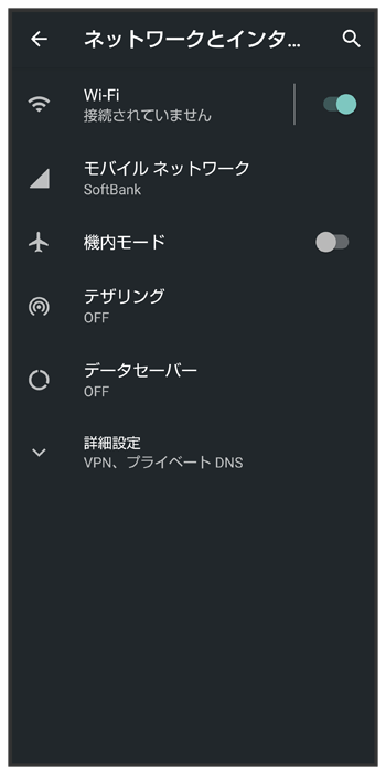 | モバイル ネットワーク | が追加されます。 ・をタップするたびに、有効( データ使用量画面が追加されます。 モバイルデータ使用量画面で が追加されます。モバイルデータ使用量画面から からが個別の項目として移動されます。 |