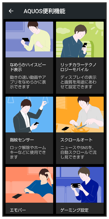 | 便利な操作設定 | 追加され、電源キーを2回押ししたときの動作やナビゲーションバーの設定が行えます。 |