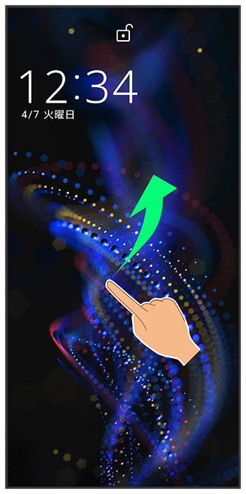 ロック画面を上にフリック