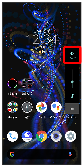 (バイブ)に変わり、マナーモード(バイブ)に設定されます。