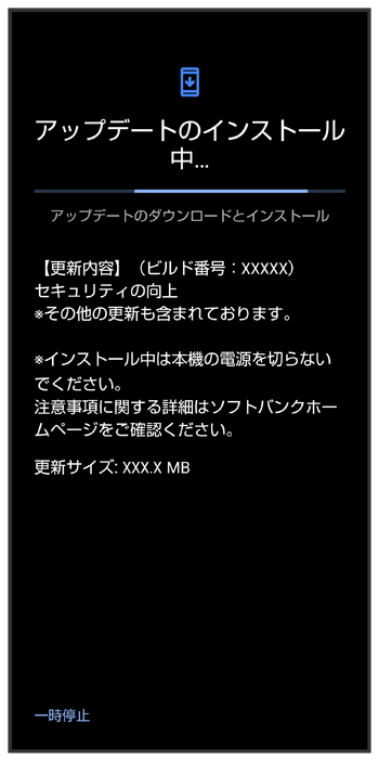 - システムアップデート中も他の機能を使用できます。ただし、システムアップデートの通知後10日間は、システムアップデート中に他の機能を使用していると、アップデートのインストールが一時的に停止されます。をタップすると、インストールが再開され、他の機能も使用可能になります。
