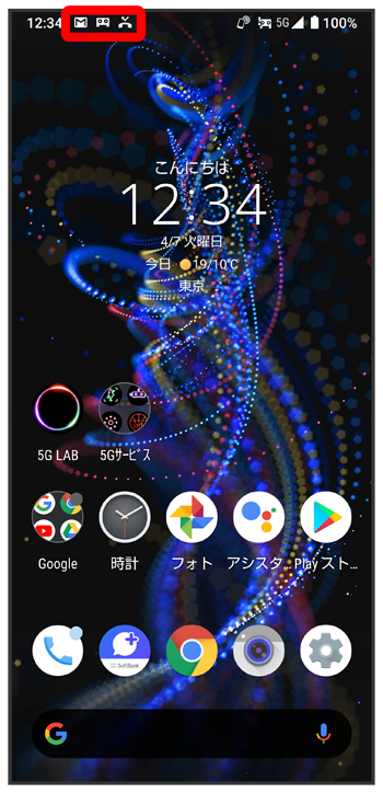ステータスバーの左側に表示されるアイコンには、次のようなものがあります。