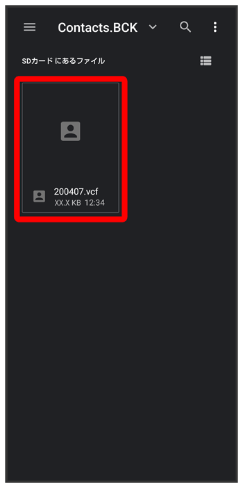 本機やほかの携帯電話でSDカードに保存(バックアップ)した電話帳データを読み込み(インポート)できます。