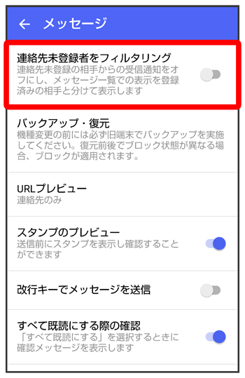 設定を有効にすると、連絡先に登録していない差出人からのメッセージは通知されなくなります。