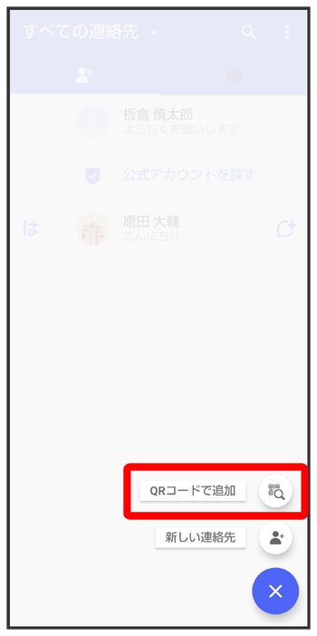 相手機器でQRコードを表示QRコードを画面中央に表示