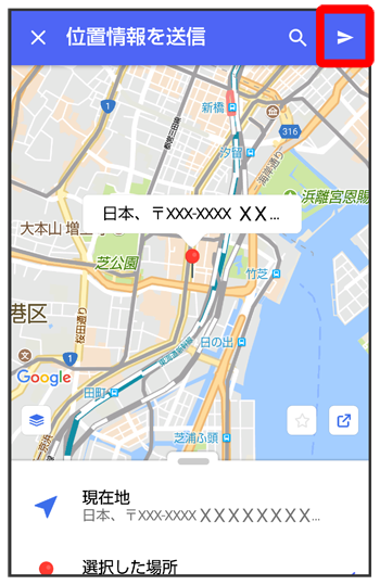 をタップすると、現在地情報が送信されます。