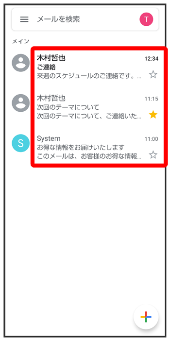 メール一覧画面が表示されます。