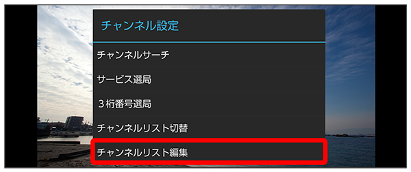 チャンネルリスト編集画面で、削除するチャンネルリストをロングタッチチャンネルリストを再スキャンする