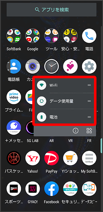 アプリをロングタッチすると、アプリにより機能へのショートカットが表示される場合があります。機能ショートカットをタップすると、その機能を直接起動できます。