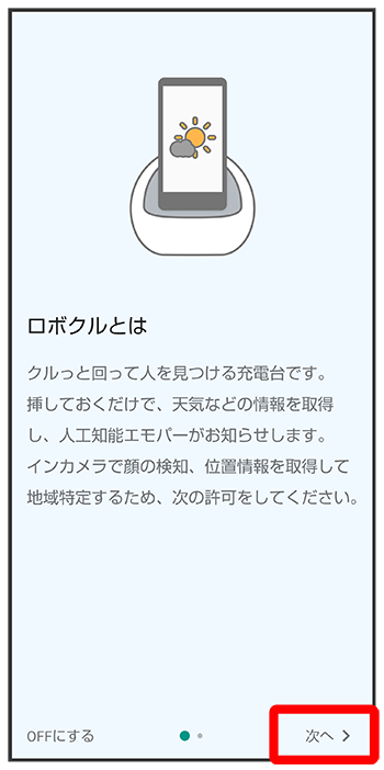 ロボクルを利用するには、あらかじめ、ロボクルに機能の利用を許可させる必要があります。