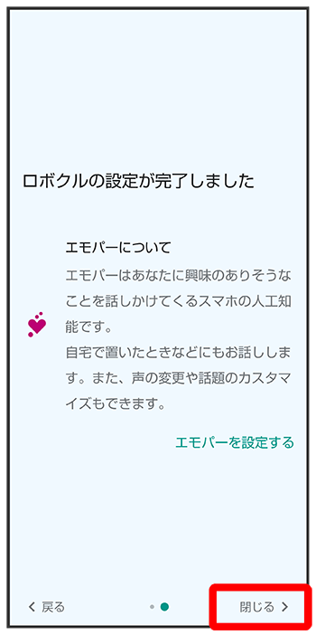 - エモパーの設定を行う場合は、をタップし、画面に従って操作してください。
