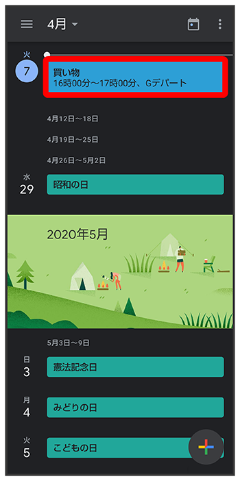 カレンダー画面で、月部分をタップ表示させたい日をタップこちらで検索できます