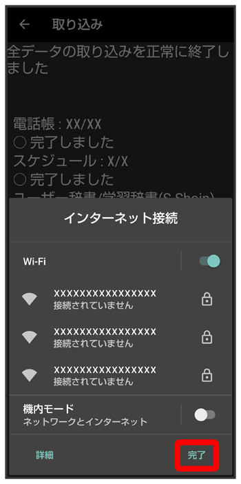 - あらかじめ、バックアップデータを保存したSDカードを取り付けてください。詳しくは、「SDカードを取り付ける」を参照してください。