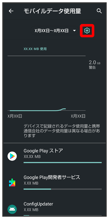 をタップすると、単位(MB/GB)を変更できます。- データ使用量は目安です。実際の使用量とは異なる場合があります。