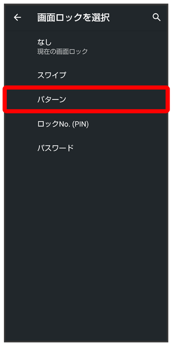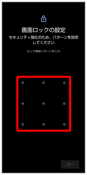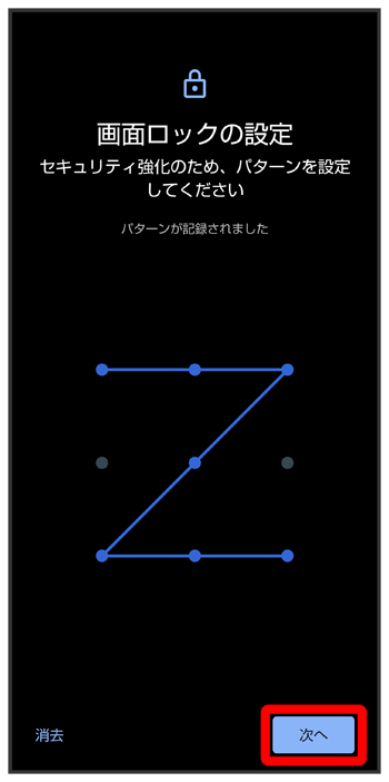 パターンを指でなぞって画面ロックを解除するように設定する