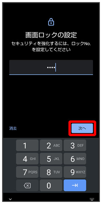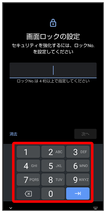- をタップすると、入力したロックNo.(PIN)を消去できます。