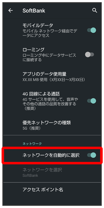 - 自動的に適切な通信事業者に接続するように設定するときは、再度、をタップします(