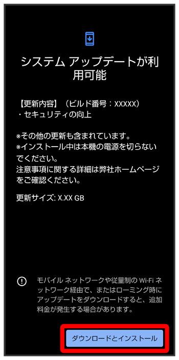 システムアップデート画面が表示されます。