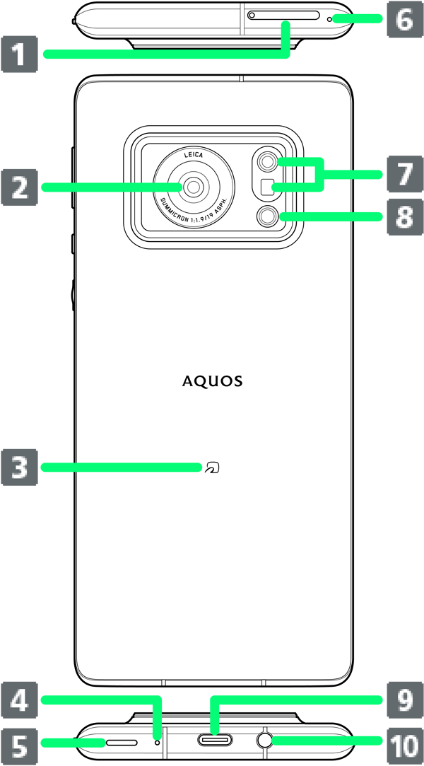 | FeliCaマーク | NFC/おサイフケータイ®ご利用時に、リーダー/ライター(読み取り機)にかざします。 |