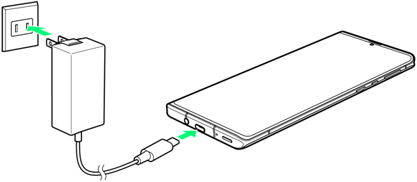 ACアダプタは、防水対応していません。本機または充電器が濡れている状態では、USB Type-Cプラグを絶対に接続しないでください。