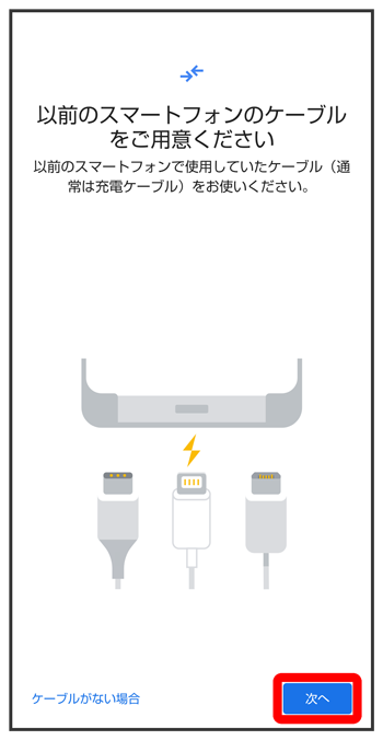 - これまでお使いのスマートフォンのケーブルがない場合は、をタップして、画面に従って操作してください。