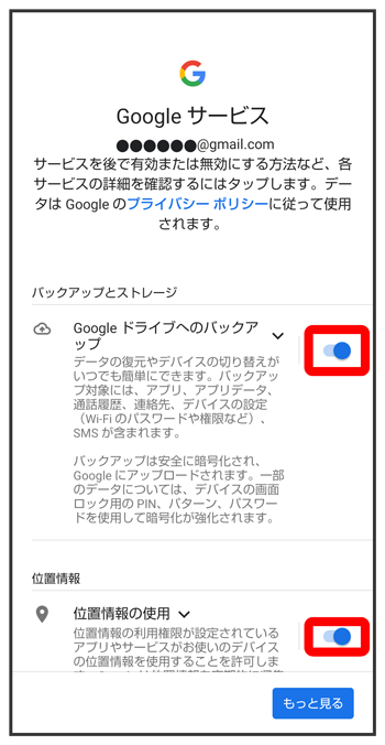 - Google アカウントを設定すると、引き継ぎ可能なデータの一覧が表示されます。