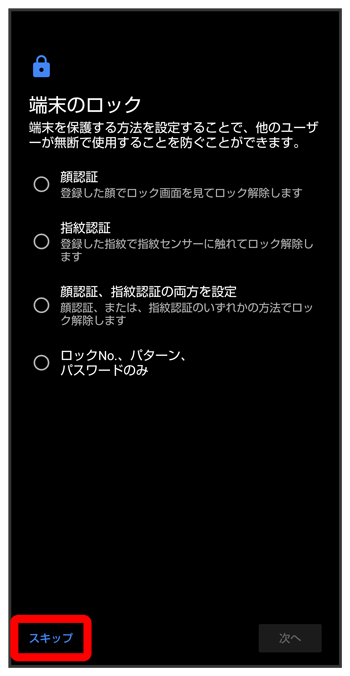 - ほかの端末などからデータをコピーしないときは、をタップします。