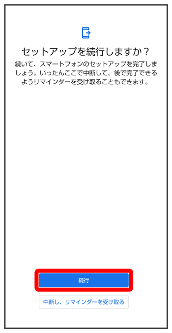 - 初期設定を中断し、あとでリマインダーを受け取るときは、をタップします。
