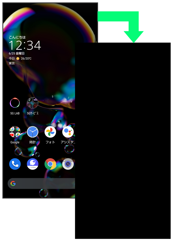 - 画面点灯時に電源キーを押すと、手動で画面ロック状態にすることができます。