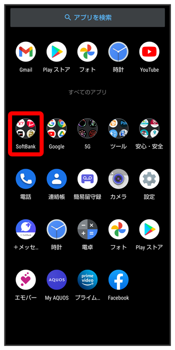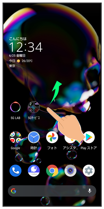 ホーム画面を上にフリック