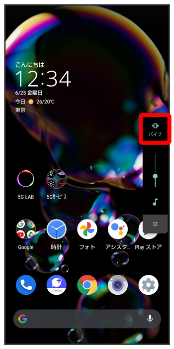 (バイブ)に変わり、マナーモード(バイブ)に設定されます。
