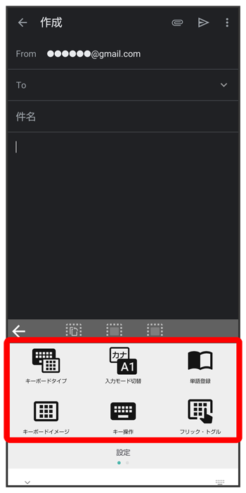 | フリック・トグル | フリックの感度、自動カーソル移動などを設定できます。 |