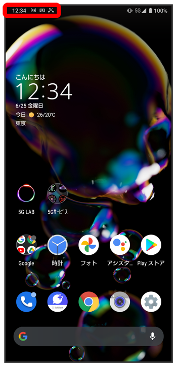ステータスバーの左側に表示されるアイコンには、次のようなものがあります。