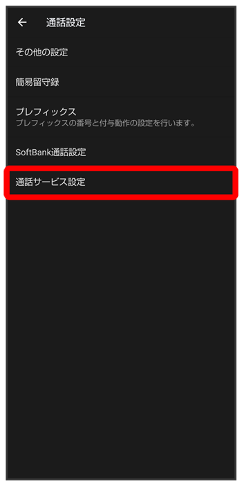 通話サービス設定画面で/規制方法をタップ発信規制をすべて解除する