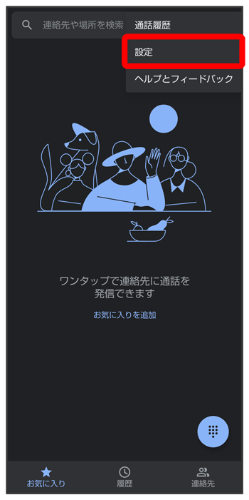 電話設定画面で電話番号入力欄をタップ電話番号を入力こちらで検索できます