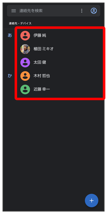 )が切り替わります。 - お気に入りに登録された連絡先は、連絡帳画面の上部に表示されます。
