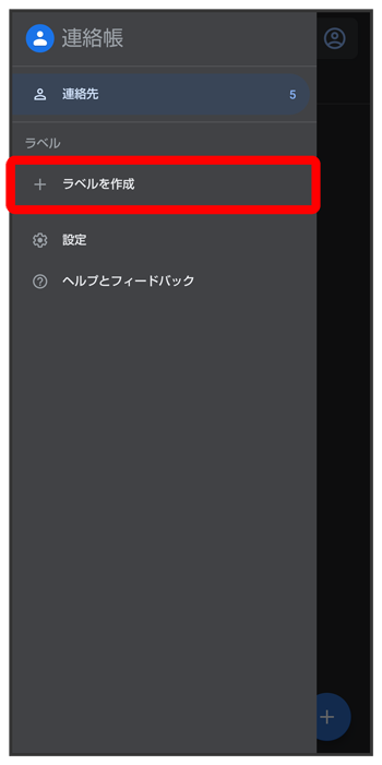 (電話)と操作して表示した連絡先画面では、ラベルの登録はできません。