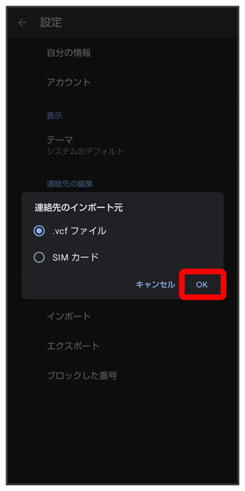 本機やほかの携帯電話でSDカードに保存(バックアップ)した電話帳データを読み込み(インポート)できます。