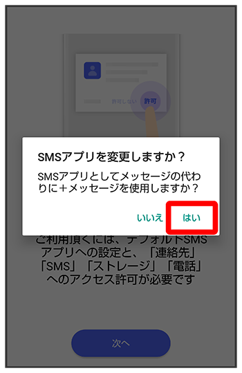- をタップした場合は、SMS/S!メールのみの利用となり、+メッセージは利用できません。