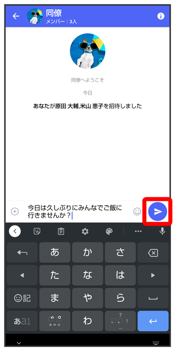 グループメッセージ内で、メンション付きメッセージを送信することができます。
